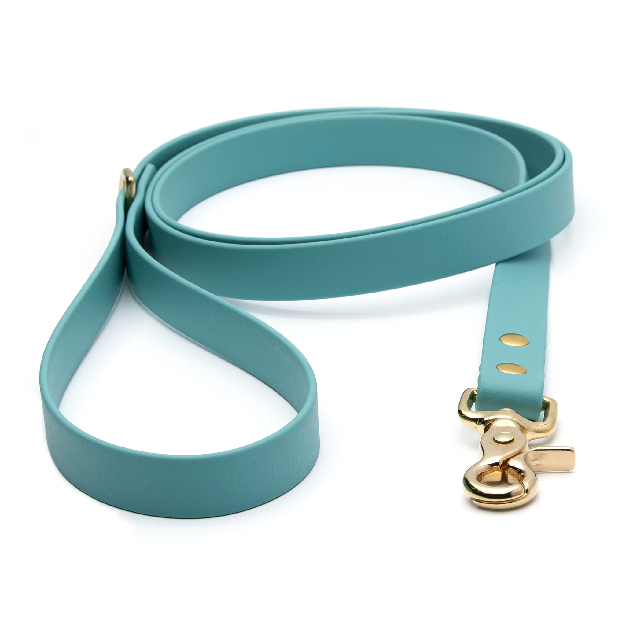 Introducing our BioThane® Waterproof Dog Leash in Dusty Turquoise. This durable and stylish leash is perfect for outdoor adventures and everyday use. Whether you're hiking with your furry friend or just going for a walk around the block, this leash is a must-have. Made from 100% genuine BioThane®, it's odor-proof and water-resistant. The dusty turquoise color is eye-catching and beautiful for both you and your four-legged companion. Say goodbye to smelly wet dog leashes with this reliable and long-lasting solution.