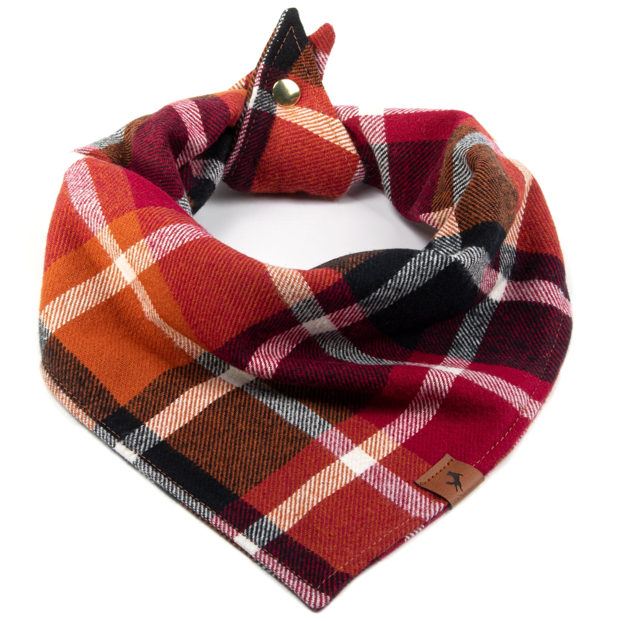 Our easy-to-use tie-on/snap Colors of Fall Dog Bandana combines style and functionality for your furry friend. It's perfect for dogs of all sizes and features a convenient snap closure and a tie for a secure fit. Crafted from 100% brushed cotton, it's comfortable for your pet and machine washable for effortless care. This bandana adds a fashionable touch, whether for a special occasion or an everyday walk in the park. Available in multiple sizes to suit every dog!